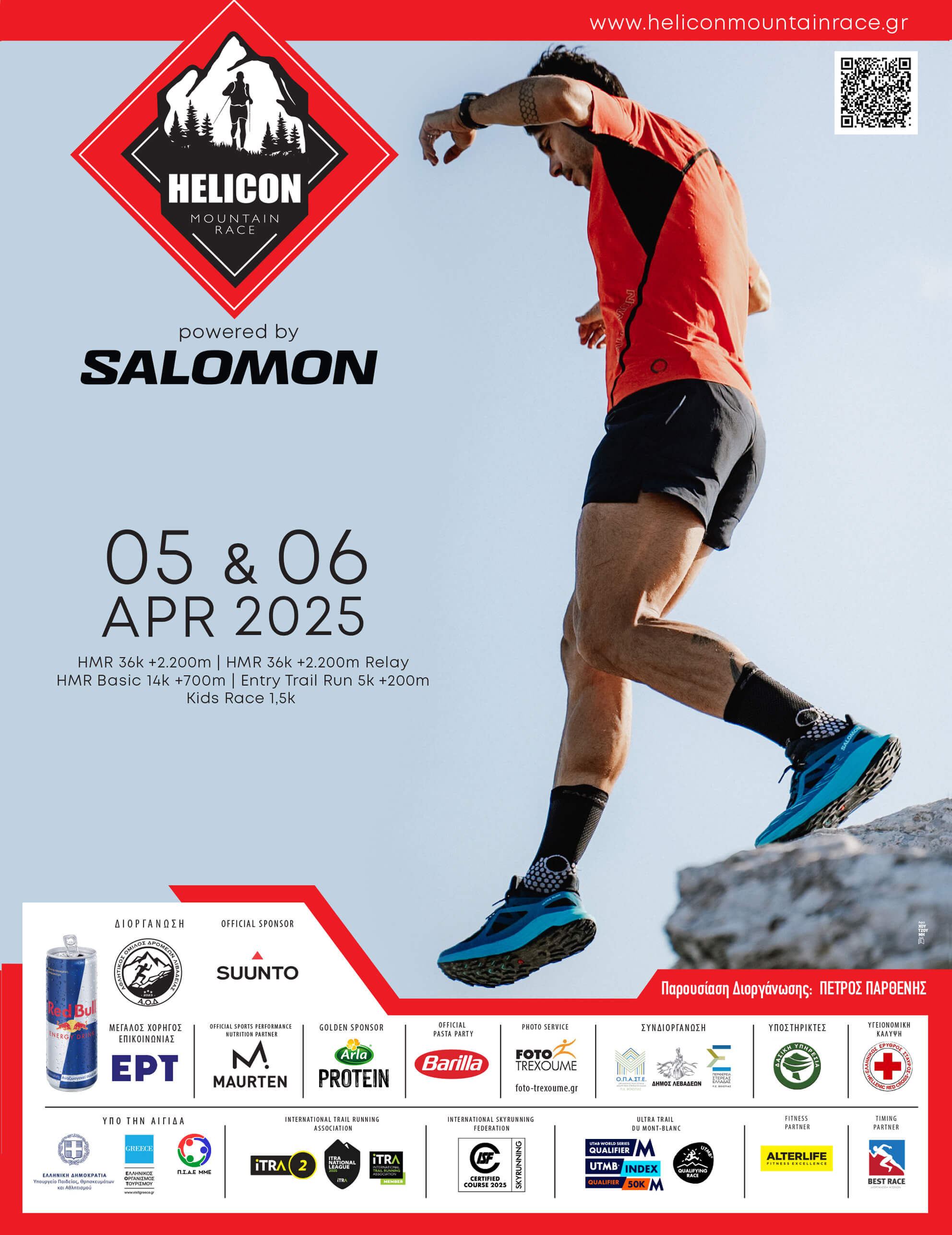 Ο Πανελληνιος Συλλογος Αθλουμενων Εργαζομενων στα ΜΜΕ σας προσκαλεί να λάβετε μέρος στον αγωνα με την επωνυμία HELICON MOUNTAIN RACE powered by SALOMON, που θα γινει απο τον Αθλητικο Όμιλο δρομέων Λιβαδειάς στις 5 και 6 Απριλίου.