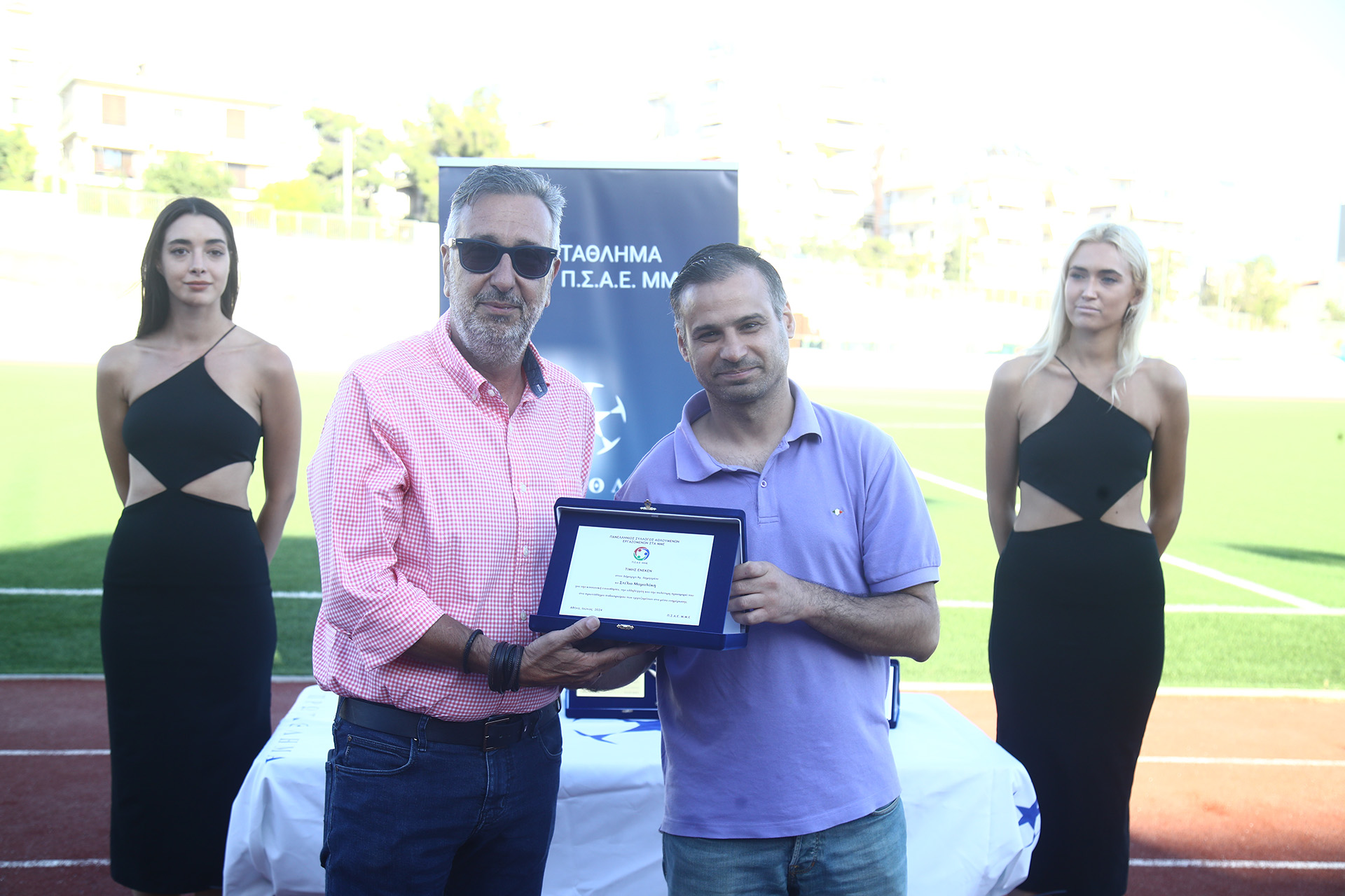 Η διοργάνωση του Κυπέλλου ποδοσφαίρου Τύπου έλαβε χώρα στο δημοτικό γήπεδο, Αγίου Δημητρίου Αττικής και ο Π.Σ.Α.Ε. ΜΜΕ τίμησε για την άριστη φιλοξενία τον δήμαρχο της πόλης, Στέλιο Μαμαλάκη καθώς και τον αντιδήμαρχο, αθλητισμού & πολιτισμού, Ευάγγελο Μπούρη, ο οποίος βοήθησε σημαντικά στην άρτια διεξαγωγή του αγώνα. Ο δήμαρχος, Στέλιος Μαμαλάκης σε δηλώσεις του ευχαρίστησε από την πλευρά του τον σύλλογο, Π.Σ.Α.Ε. ΜΜΕ για την αρωγή στο τομέα της επικοινωνίας της εκδήλωσης που διοργάνωσε ο δήμος Αγιου Δημητρίου με μεγάλη επιτυχία με τον τίτλο "ΕΙΡΗΝΟΔΡΟΜΙΑ 2024" καθώς επίσης συνεχάρη τους συναδέλφους που έλαβαν συμμετοχή στο φετινό μαραθώνιο των 5 χιλιομέτρων.